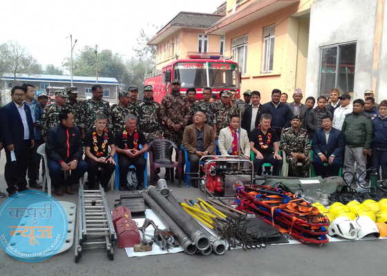 झापा : द गोर्खा मेमोरियल फण्ड बेलायतले झापाको मेचीनगर नगरपालिकालाई करिव १५ लाख रुपैयाँ मुल्य बराबरका अग्नि नियन्त्रणका आवश्यक सामाग्री