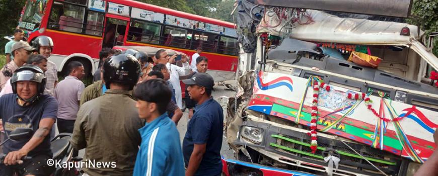 धरान : धनकुटाबाट मोरङ जाँदै गरेको मालवाहक गाडीले रोकिराखेको बसलाई ठक्कर दिएको छ । धरानबाट इटहरी तर्फ जाँदै गरेको अवस्थामा सेउती पुल नजि