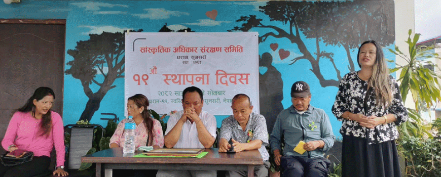 धरान : सांस्कृतिक अधिकार संरक्षण समितिले १९ औँ स्थापना दिवस मनाएको छ ।स्वस्तिका चोकमा भएको कार्यक्रममा सहभागीहरूले पाथीभरा/मुक्कुमलुङ क