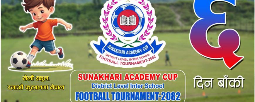 धरान : सुनसरी जिल्ला स्तरीय अन्तर विद्यालय ‘सुनाखरी एकेडेमी कप’ फुटबल प्रतियोगितामा १४ विद्यालय सहभागी रहने आयोजक धरान-१२ स्थित सुनाखरी एकेडेमीले जनाएको छ ।प्रतियोगिता धरान-१७ ...
