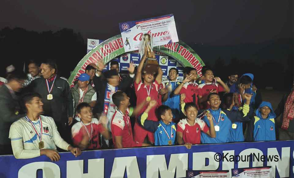 धरान : सुनसरी जिल्ला अन्तर विद्यालय सुनाखरी एकेडेमी कप फुटबल प्रतियोगिताको उपाधि आयोजक सुनाखरी एकेडेमीको सुनाखरी रेडले चुमेको छ ।एन्फा टेक्निकल सेन्टरमा बुधबार भएको फाइनल खेलम ...