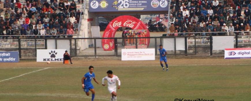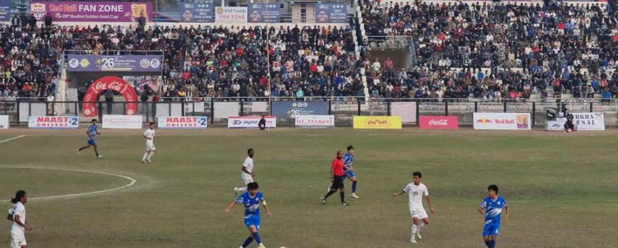 धरान : बुढासुब्बा गोल्ड कप फुटबल प्रतियोगिताको चौथो दिनको खेलमा लिग च्याम्पियन चर्च ब्वाइज काठमाण्डोै, नेपाल पुलिस क्लबलाई १–० गोलले पराजित गरी सेमिफाइनलमा प्रवेश गरेको छ।धरान ...