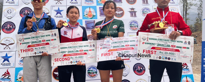 धरान : ४औँ धरान गोर्खा ट्रेल ब्लेजरको उपाधि पुरुषतर्फ उमेश थापा र महिलातर्फ प्रिया तामाङले जितेका छन्।पुरुष विजेता उमेश थापा धरानका धावक हुन् भने महिला विजेता प्रिया तामाङ भार ...