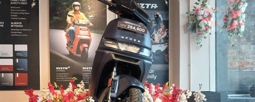 इटहरी : इटहरीमा विद्युतीय दुई पाङ्ग्रे सवारी साधनमा सक्रिय अथर इनर्जीको विद्युतीय स्कुटर ‘रिज्टा एस’ सार्वजनिक भएको छ। नेपालका लागि आधि