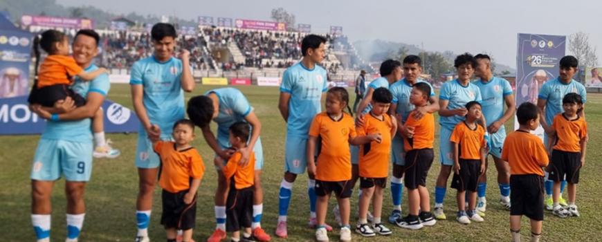 धरान : बुढासुब्बा गोल्ड कप २६ औँ संस्करणको उद्घाटन कार्यक्रममा खेलाडीहरू अटिजम भएका बालबालिकाहरूसँग रङ्गशाला प्रवेश गरेका थिए । फि