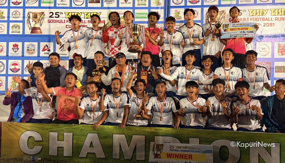 धरान : २५ औँ संस्करणको टेष्टी टेष्टी गोधुली रनिङ कप फुटबल प्रतियोगितामा १५ वडासँग टाइब्रेकरमा पराजित हुँदै डिफेन्डिङ च्याम्पियन १३ वडा