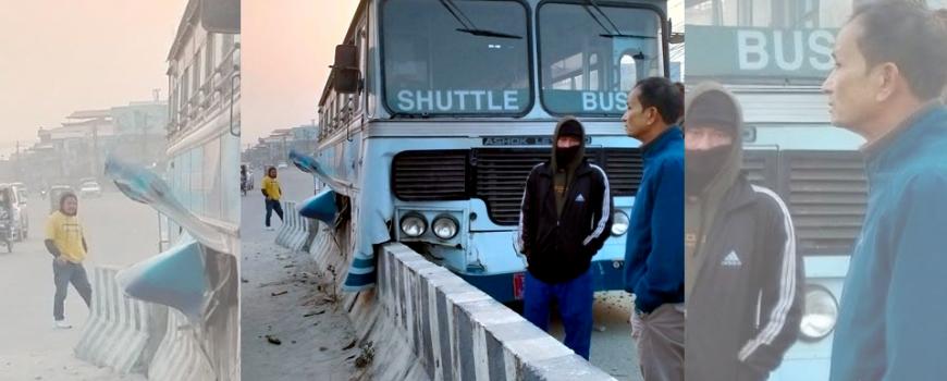 झापा : इटहरी इन्टरनेशनल कलेजका विद्यार्थी लिन झापा गएको बस दमकस्थित गोर्खा डिपार्टमेन्ट स्टोर अगाडि सडकमा राखिएको डिभाइडरमा ठोक्किँदा द