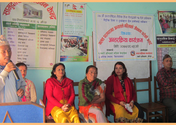 पथरी: मोरङको पथरीशनिश्चरे नगरपालिकाको महिला तथा बालबालिका शाखाको आयोजनामा लैंगिक हिंसाविरुद्धको १६ दिने अभियान अन्तर्गत आइतवार वडा नम्व