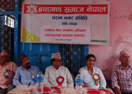 धरान:ब्राहमण समाज नेपाल ,धरान नगर समितिको आयोजना र धरान उपमहानगरपालिकाको सहयोगमा ज्योतिष विद्या सम्बन्धि प्रशिक्षण सम्पन्न भएको छ । अष