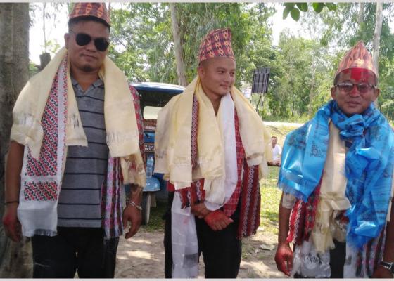बराहक्षेत्र : गोरु काटेको अभियोगमा पक्राउ परेका निमा शेर्पा, आसिक राई र तिलक राईलाई बराहक्षेत्र ३ नडाहामा खादा, अबिर ढाका टोपी लगाएर वि