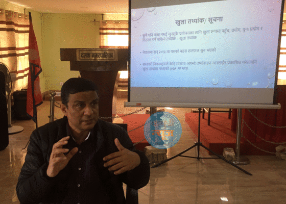 झापा: झापाको दमक नगरपालिकामा स्थानीय जनप्रतिनिधि, विभिन्न संघसंस्था, नीजि क्षेत्र र सञ्चारकर्मी बीच सुचनाको हक र खुल्ला तथ्याङ्क विषयक
