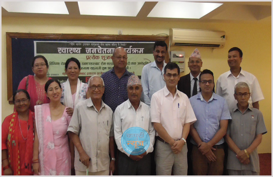 स्वाथ्य जनचेतनामुलक कार्यक्रम प्रत्येक हप्ताको शुक्रबार सुनसरी उद्योग वाणिज्य संघ, धरान – १ मा बेलुकी ३ः४५ सम्पन्न हने गर्दछ । सुनसरी उद्योग वाणिज्य संघ, वीपी अस्पताल र कृति टेलिभिजनको आयोजनामा सम्पन्न हुने यस कार्यक्रममा प्रत्येक हप्ता फरक फरक रोगका विषयमा विशषज्ञ डाक्टरहरुद्वारा प्रस्तुत हुने गर्दछ । कार्यक्रममा ईच्छुक जो कोही सहभागी भएर आफ्नो जिज्ञासा पनि राख्न पाउनेछन् । शुक्रबार सम्पन्न कार्यक्रमलाई कृति टेलिभिजनबाट सोमबार प्रसारण समेत गर्ने गरेको छ ।