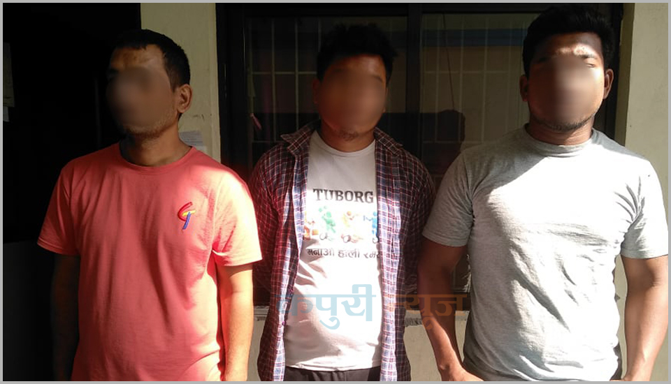 पक्राउ पर्नेमा अर्जुनधारा नगरपालिका ६ बस्ने ४० वर्षीय लोकेन श्रेष्ठ र भद्रपुर नगरपालिका १० बस्ने ३६ वर्षीय विनोद राजवंशी र २४ वर्षीय गोविन्द राजवंशी रहेका छन् ।