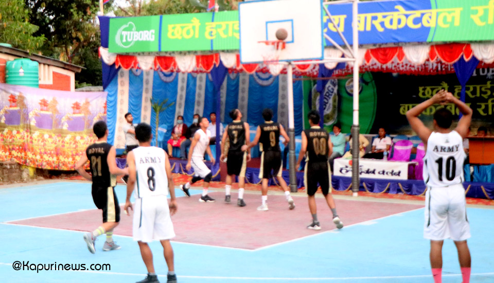 सुनसरी : नेपाली सेनाको विभागीय टिम त्रिभुवन आर्मी क्लब धरानमा जारी छैटौँ हराईजन राष्ट्रिय बास्केटवल कपको फाइनलमा प्रवेश गरेको छ । धरान स्थित हराईजन क्लबको कोर्टमा आज बुधवार भएको पहिलो सेमिफाइनल खेलमा काठमाण्डौको रोयल्स बास्केटबल क्लबलाई ७९ का विरुद्ध ९२ स्कोरले पराजित गर्दै आर्मीले उपाधि भिडन्त पक्का गरेको हो।