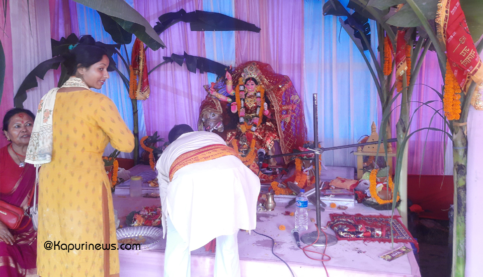 इटहरी : नवरात्री सुरु भए सँगै इटहरीको जनता माध्यमिक विद्यालयको खेलमैदानमा सार्वजनिक दुर्गा पूजा सुरु भएको छ । नवरात्रीको पहिलो दिन जमरा राखेर दुर्गापुजाको विधिवत् सुरुवात भएको हो ।