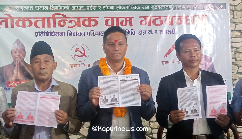 धरान : लोकतान्त्रिक बाम गठबन्धनबाट सुनसरी-१ को (क) र (ख) प्रदेश सभा सांसद उम्मेदवारद्वय उमेश थापा र रेवती रमण राईले शुक्रवार जारी प्रतिबद्धता पत्रमा प्रदेश १ को नामकरणलाई पहिलो चुनावी एजेण्डा बनाएका छन् । काँग्रेस, माओवादी, नेकपा एसद्वारा संयुक्त रूपमा जारी संकल्पपत्रको पहिलो बुँदामा प्रदेशको नामकरणलाई प्राथमिकतामा राखिएको हो ।