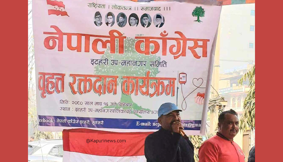 सोही अनुसार काँग्रेस इटहरी उपमहानगर समितिले रक्तदान कार्यक्रम सम्पन्न गरेको छ । इटहरी उपमहानगरपालिका कार्यालय अगाडि केन्द्रीय प्रतिनिधि प्रदीप सुनुवारको उपस्थितिमा कार्यक्रम उद्घाटन भएको हो ।