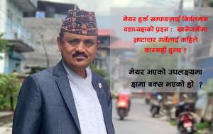 उनले मेयरको दिमागमा आएको एजेन्डा मात्र एजेन्डा भएर बैठकमा आउने हो र ? भनी प्रश्न पनि गरे । कार्यपालिका बैठकमा आमजनता र कार्यपालिका सदस्य वडा अध्यक्षहरूको एजेन्डा ‘एजेन्डा’ भएर आउनु पर्नेमा उपमेयर बेघाले जोड दिए ।