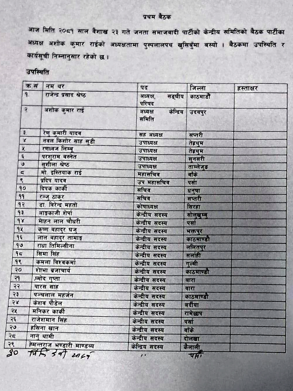 यादव नेतृत्वको पार्टीका सात जना सांसदहरू अशोककुमार राई, प्रदीप यादव, नवलकिशोर साह, वीरेन्द्र महतो, रञ्जु ठाकुर, हसिना खान, सुशीला श्रेष्ठ निर्वाचन आयोग पुगेका छन् ।