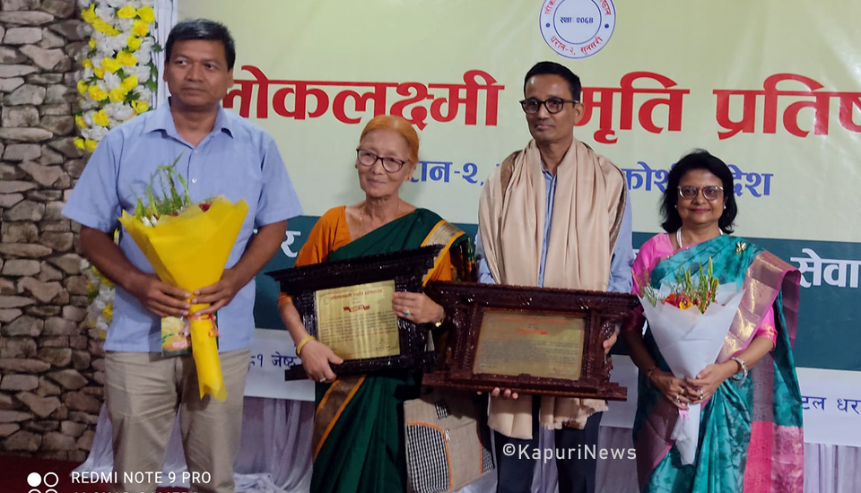धरान : लोकलक्ष्मी स्मृति प्रतिष्ठानद्वारा आज शनिवार आयोजित एक समारोहमा प्रा.डा.सञ्जीव शर्मा र धरान नगरपालिकाका पूर्व उपप्रमुख स्वर्गिय कृष्णनारायण पलिखेलाई मरणोपरान्त ५१/५१ हजार रुपैयाँ राशीको ‘प्रोफेसर इन्द्रप्रसाद विमला श्रेष्ठ धरान सेवा सम्मान पुरस्कार’ प्रदान गरिएको छ ।