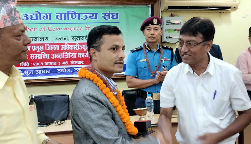 उद्योग वाणिज्य संघ सुनसरीले सोमबार उनको स्वागतमा गरेको कार्यक्रममा प्रजिअ तिवारीले उक्त कुरा बताएका हुन । उनले शान्ति सुरक्षा कायम गर्न सबै मिलेर लाग्नुपर्ने बताउँदै उनले भने ‘कानुन कार्यान्वयन गर्न कठोर हुन्छु, व्यवसायिहरु निर्धक्क रहनु होस ।’
