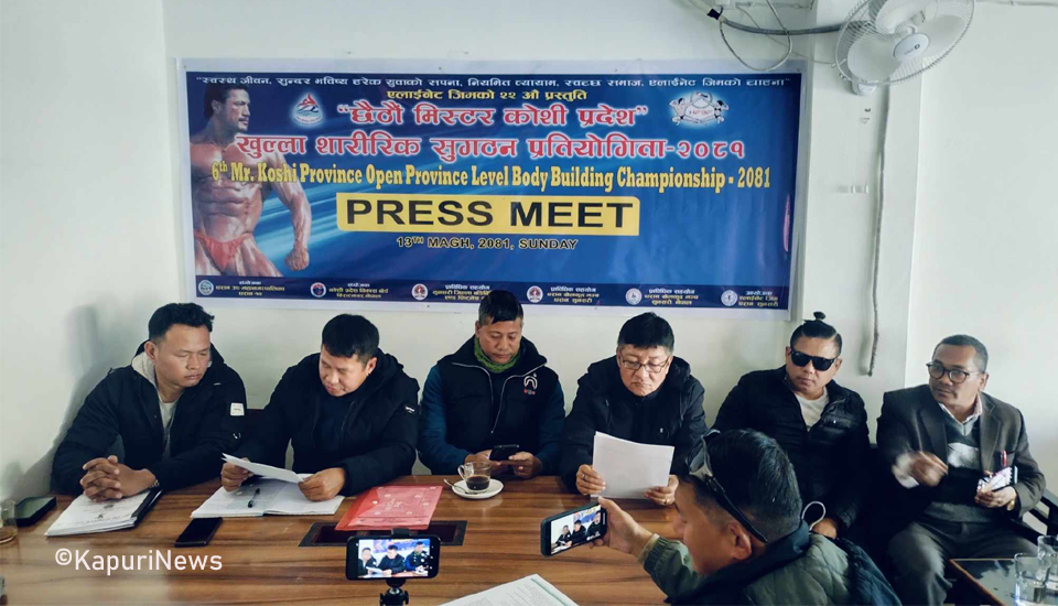 गत: वर्षका विजेता पाँचौँ मिस्टर कोशीको उपाधि भिजन फिटनेस धरानका विनोद कुमार नेपालीले चुमेका थिए । पत्रकार सम्मेलनमा कोशी प्रदेश शारीरिक सुगठन सङ्घका अध्यक्ष केशव श्रेष्ठ, ऋषिराज राई, पूर्व मिस्टर कोशी सन्दीप गिरि, पूर्व मिस्टर धरान कविरभगत प्रधानाङ्ग लगायतको उपस्थिति रहेको थियो ।